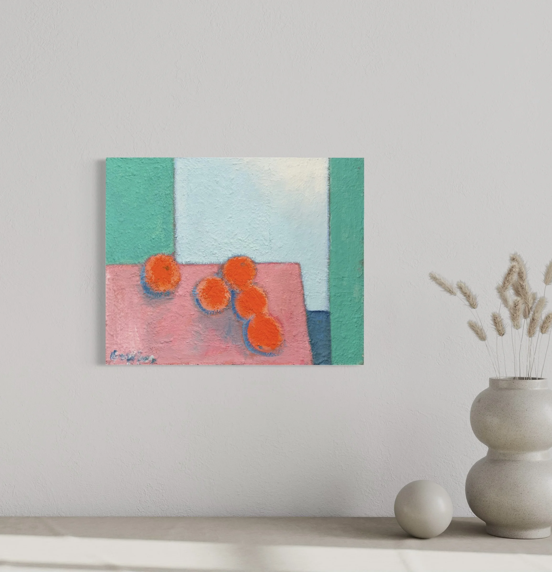 Chris Capper’s meditative paintings offer a space for contemplation and reflection. His evocative compositions are careful considerations of form and space, yet are not committed to precise definition. Vibrant orbs imply flowers, while interiors are mapped in abstracted geometry, both recurring motifs throughout his works